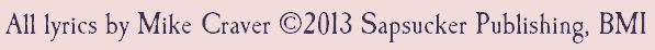 Mike Craver Contact Discography Musicals News P.R. Schedule Store Tunes Home | Beautiful Bibulous Babylon The Ballad of Frederick Fosdick The Mortician from Morden Manitoba The Ballad of Deadwood Dan Summerville, Colorado There's a Hole in Your Tights Oh What a Golden Dream What Ladies Love The Night I Met Miss B. The Dame of Camellias The Girl in the Gem Saloon Ode to Mysterious Dave Mather Stuffed People The Ghost in the Theatre When It's Rhubarb Time in Orangeville Railroading on the Great I. C. Yesteryear