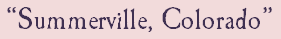 from BOSH AND MOONSHINE words and music by Mike Craver Sheet music for this song available is hereFrom the 1850's through the 1880's, many unscrupulous real estate speculators and promotors acquired land west the Missouri River that seemed ideal for a future town, and sold it off as building lots. But the hopeful citizens who bought into these deals often arrived at their destination to discover only a wasteland. Many of these supposed towns were advertised as luxurious communities where residents could live cultured and carefree lives in elegant and vernal splendor. I read about it in a fancy brochure that came one day thru the mail The prettiest little town you'd ever seen with two acre parcels for sale It showed citizens strollin' down a main street in top hats & calico "Greetings," it said in gingerbread, "from Summerville, Colorado" At the at the end of a long long road that leads through a wide ravine There twinkles a town of a thousand lights -- it's a beautiful beautiful scene And its court house shines in the morning sun like a marbled temple of old And its streets spread out in elegant spokes that glimmer with the glints of goldThere's parks and ponds and promenades and a station waiting for a train There's turrets & towers & trellisses & roses blooming in a lane There's a college & a half a dozen churches and an opera house on the way And a steam boat dock & a great town clock strikin' in a grand new day I could live it seems in the land of my dreams, under a golden bow In the feckless clime of a town sublime, Summerville, Colorado I held my deed in the palm of my hands as the locomotive hurdled me 'fro And the stars seemed to rise in the western skies o'er the valley where I was to go But that great wide glittering main street where the promise of my happiness streamed Was nothing more than an old cow path full of broken wagon wheels and dreams Perhaps its citizens had tired of polo, and tennis, and cards Perhaps its businesses had foundered, and its grass withered in yards Or perhaps some wretched pilgrim disembarking from an eastern train Discovered that fair Summerville was the figment of a boomer's brain He lived it seemed in the land of his dreams under a golden bow In the feckless clime of a town sublime, Summerville, Colorado In the feckless clime of a town sublime, Summerville, Colorado